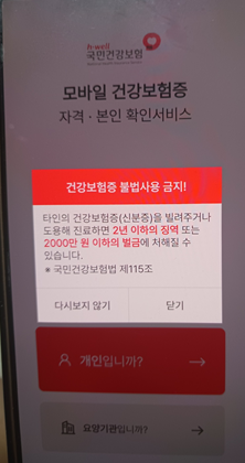 병원에서 건강보험을 적용받지 못해 진료비 전액을 부담해야하는 일이 생길 수 있으니 미리 신분증챙기시거나 간편한 건강보험증 어플을 다운로드 받아서 사용하세요! 모바일 건강보험증