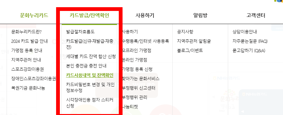 문화누리카드 잔액조회