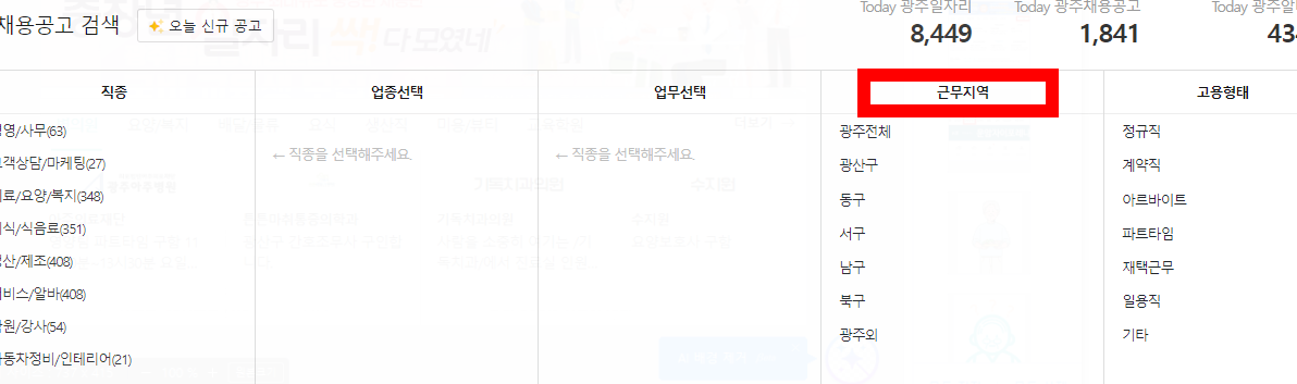 지역별 또는 직종또는 고용형태등을 체크하셔서 검색하기 버튼을 클릭하시면 됩니다.
