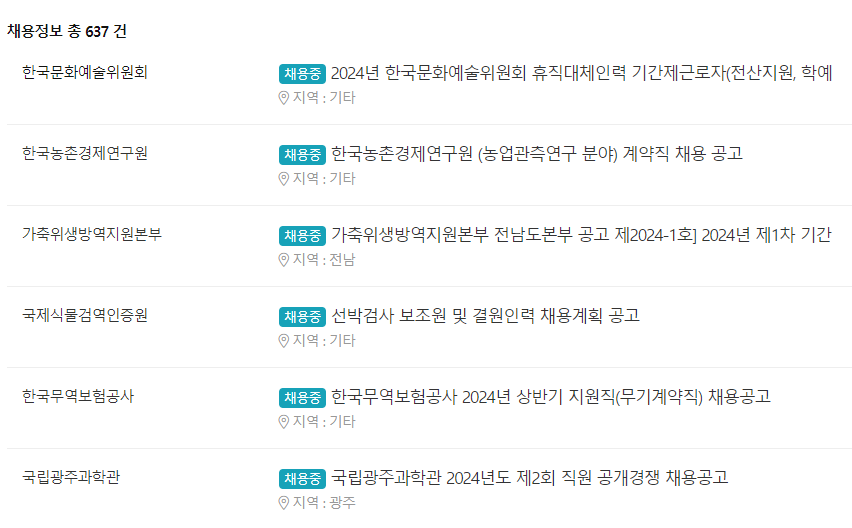 관공서 일자리도 따로 구분되어있어 일일히 관공서 홈페이지에 접속하지 않아도 되어 매우 편리합니다.