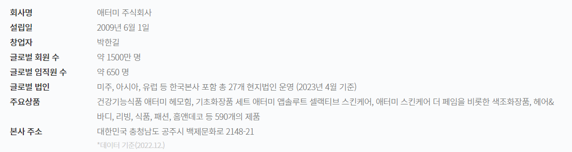 2009년에 설립된 애터미는 한국을 포함한 27개 지역에서 글로벌 네트워크 마케팅 강자로 성장했습니다. 박한길 회장이 이끄는 애터미는 혁신적인 사고와 엄선된 제품을 통해 품질, 공정성, 고객 성공을 우선시하는 소비자 중심의 접근 방식을 갖추고 있죠.