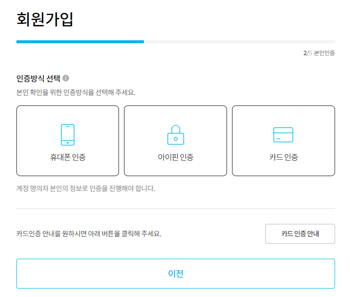 다음은 인증 수단을 선택해 주세요.