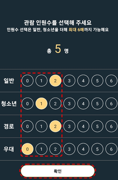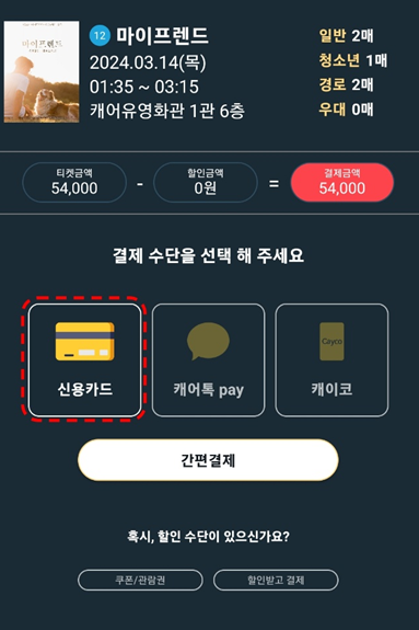 관람인원수 선택과 좌석지정, 신용카드 결제까지 이렇게 작은 화면으로 글로 보면 쉽지만 막상 기계 앞에서는 나 자신이 작아집니다. 눈앞에 화면과 너무 가까워서 내가 뭘 해야 하는지 까먹게 되는 거죠.