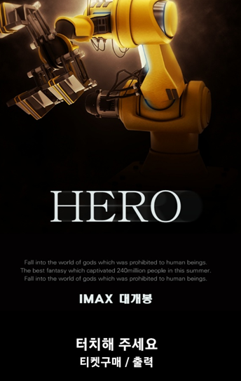 영화관에서 화면을 먼저 터치해 주세요. 티켓구매, 영화제목과 시간을 선택해 주세요.