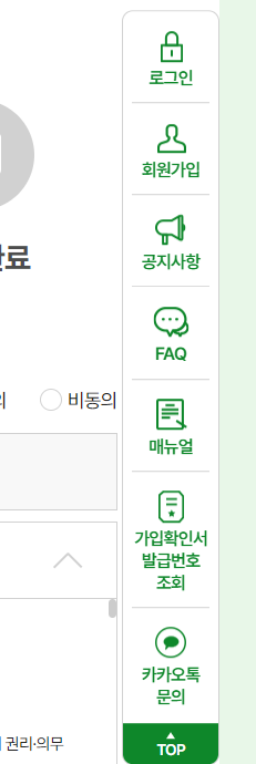 오른쪽 메뉴바에서 회원가입하셔서 진행합니다.