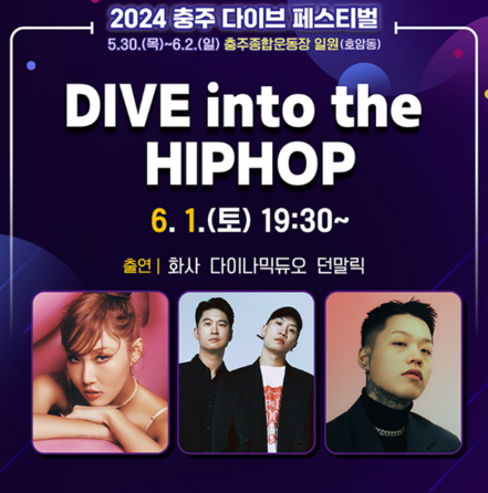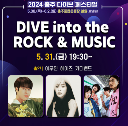 충주 다이브 페스티벌이 2024년에는 충주종합운동장으로 장소를 변경하여 개최한다고 합니다. 이번 축제에서는 충주에 흠뻑 빠질만한 다양한 프로그램이 마련되어있다고 합니다. 낮과 밤이 완전 다른 행사가 진행되며 아기자기한 프리마켓과 먹거리도 함께 즐길 수 있답니다.